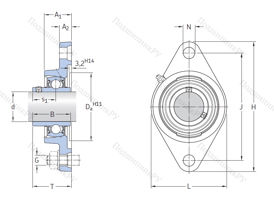 Ромбовидный корпус устройства предназначен для установки с использованием пары болтов в ограниченных пространствах. В зависимости от конкретной конструкции, может оснащаться внутренней обоймой со специальной закрепительной втулкой или стопорным винтом. В модели корпус изготавливается из стали, чугуна или иных материалов.
