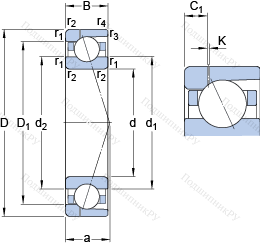 | Диаметр шарика | Dw | 22.225 | mm | |