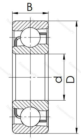 Это однорядный шарикоподшипник. Благодаря неразъемному исполнению выделяется надежностью, более низкой ценой по сравнению с разъемными. Угол контакта α=26°. Изделие воспринимает нагрузку вдоль оси до 150% от неиспользованной радиальной. Стальной сепаратор позволяет эксплуатировать узел в при рабочей температуре порядка +200° С.